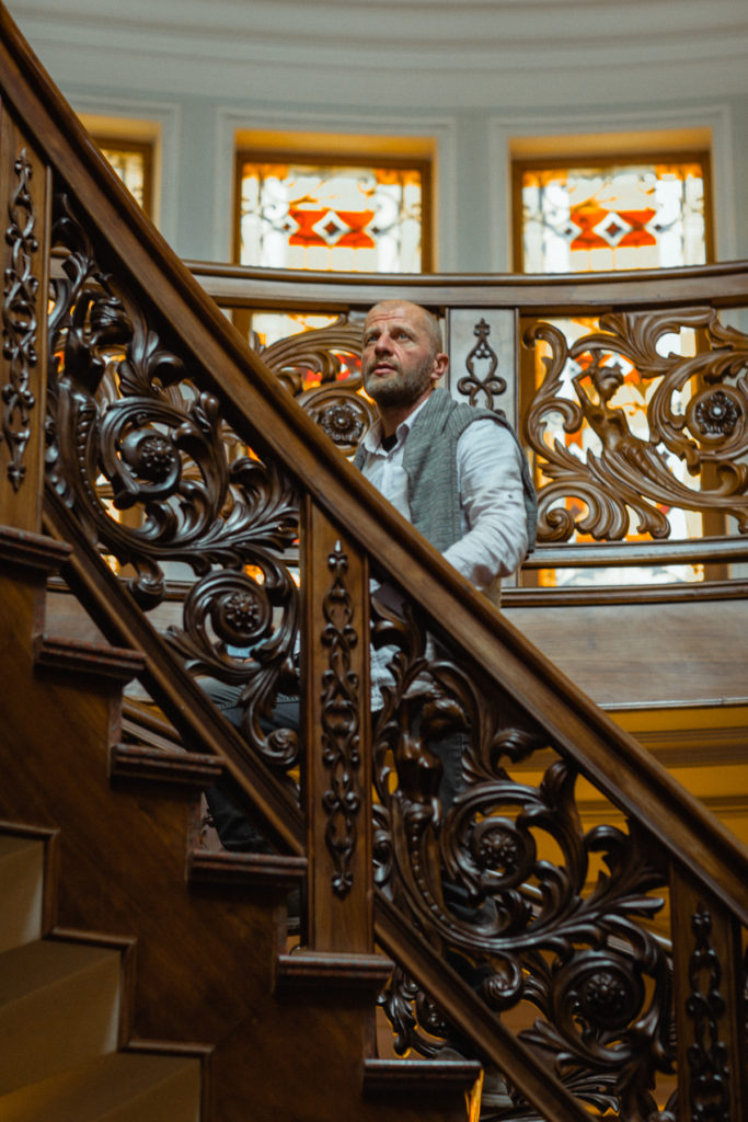 Handmade spiral staircase made of valuable wood (walnut stem) – a masterpiece of art created by designer Kote Simonishvile delights with its relief, warmth of color and originality.